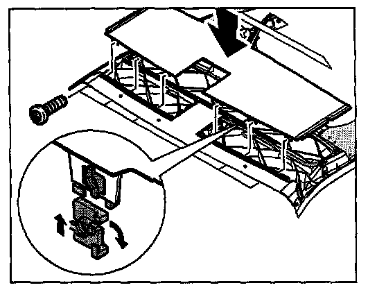 1. Insert fastening clip -44a- onto the tab of the plastic panel -44- from behind and turn 90 degrees clockwise.