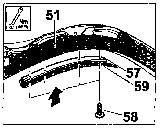 1. Position aluminium profile -57- on the styling frame -51- and screw on with the fastening screws -58-.