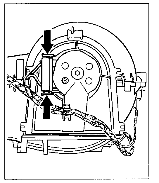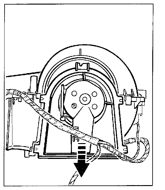 1. Remove footwell bulkhead and right air guide. Pull off electrical plug connection on the blower motor and remove wire from the holder.