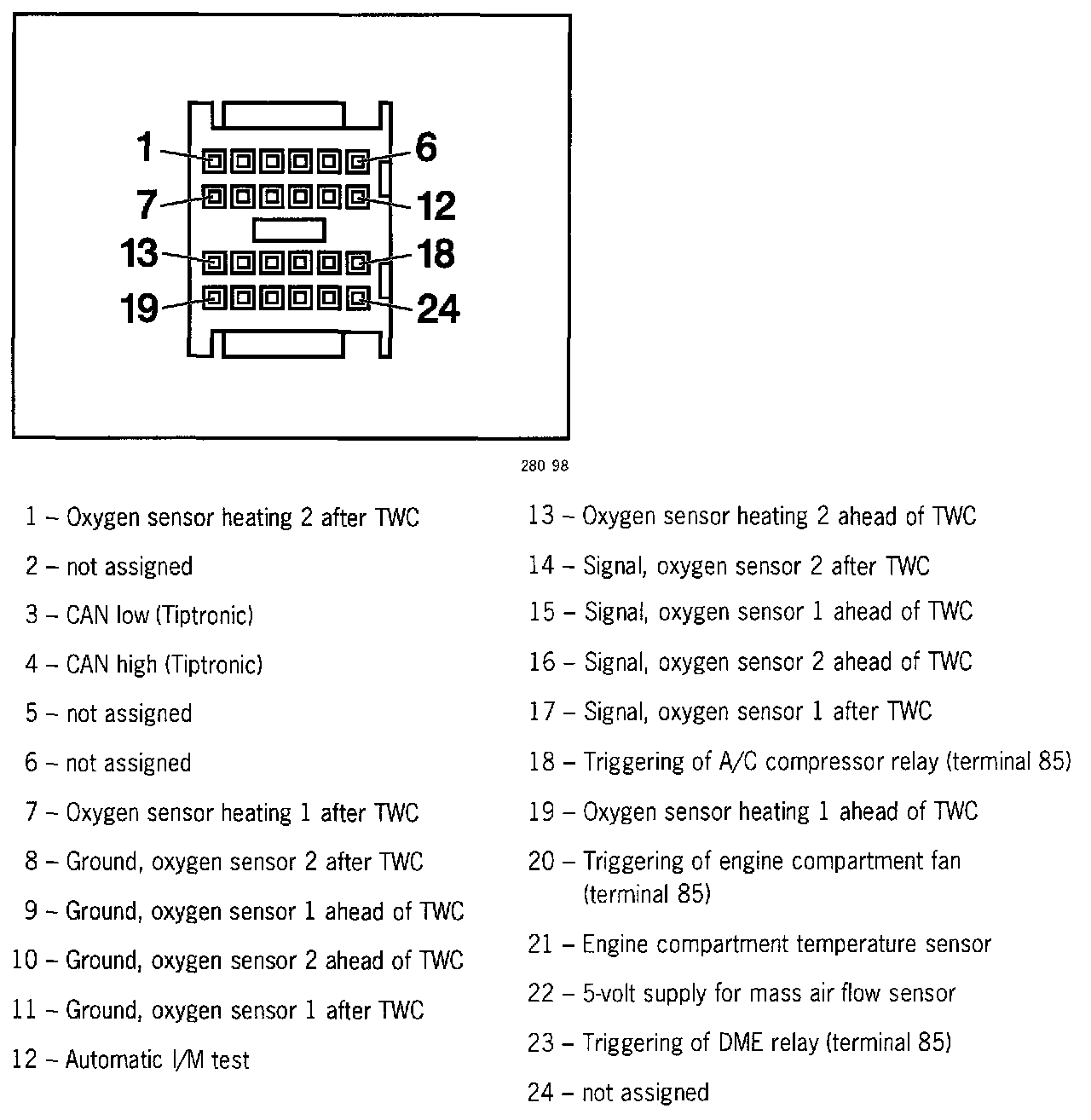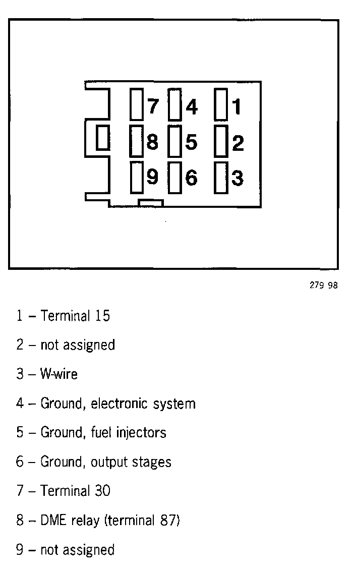 The DME control module has 134 terminals which are divided between five connectors.
