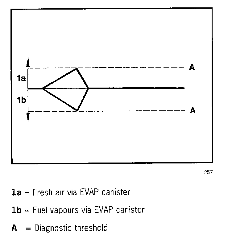 Should the additional fuel/air mixture from the EVAP canister purge valve fuel vapours and fresh air) be exactly at the ratio of lambda =1, the duty cycle of the AC valve is reduced. When the diagnostic threshold is reached, here, too, diagnosis is successfully completed.