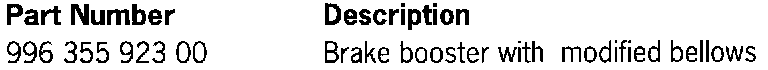 The following measures are necessary before the installation of a new brake booster (996 355 923 00) in vehicles before the stated introduction date: