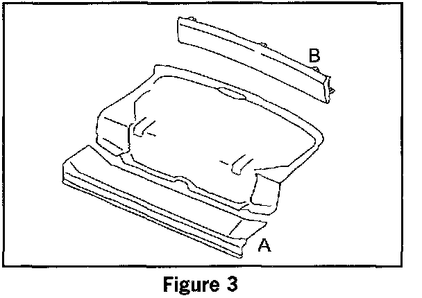 1-0. Lift the rear cover (Figure 3, Item A) up and out. Unclip the rear roof lining (Item B) towards the front and lift the rear wall lining out.