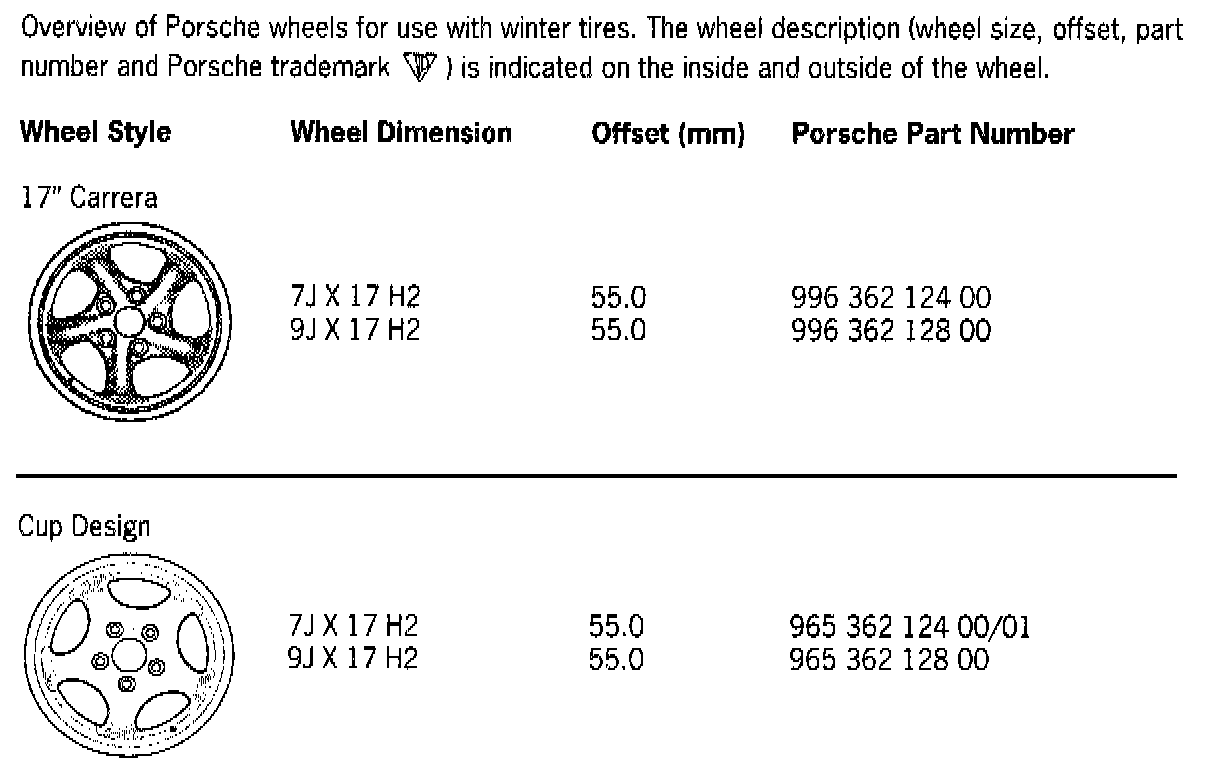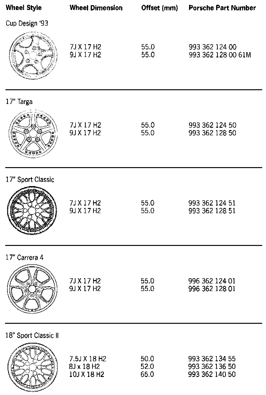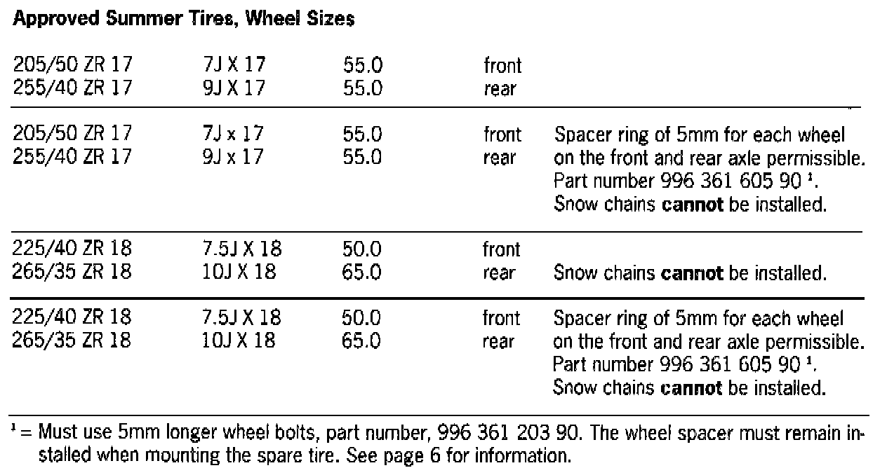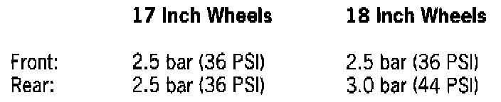 The above tire pressures are valid only for tires approved by Porsche. Tire pressures must be checked and adjusted cold (approximately 200 degrees Celsius or 680 degrees Fahrenheit). Tire pressures can never be lower than what is specified above.