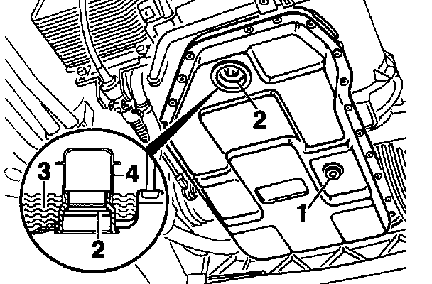 1. Unscrew ATF drain screw (1) and drain ATF fluid.