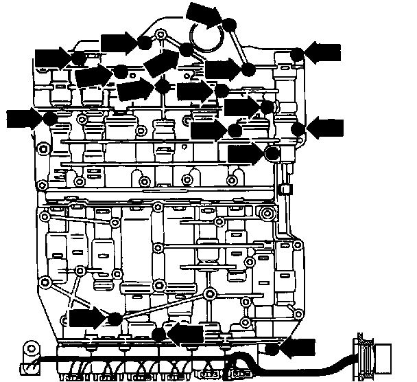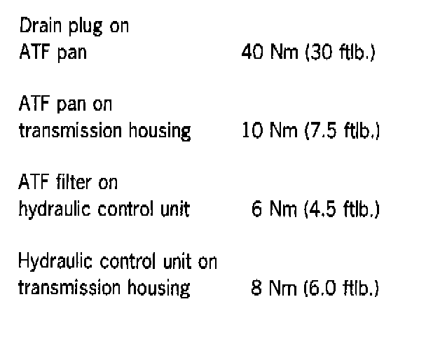Note: Do not let engine run with the ATF pan removed or without ATF filling.