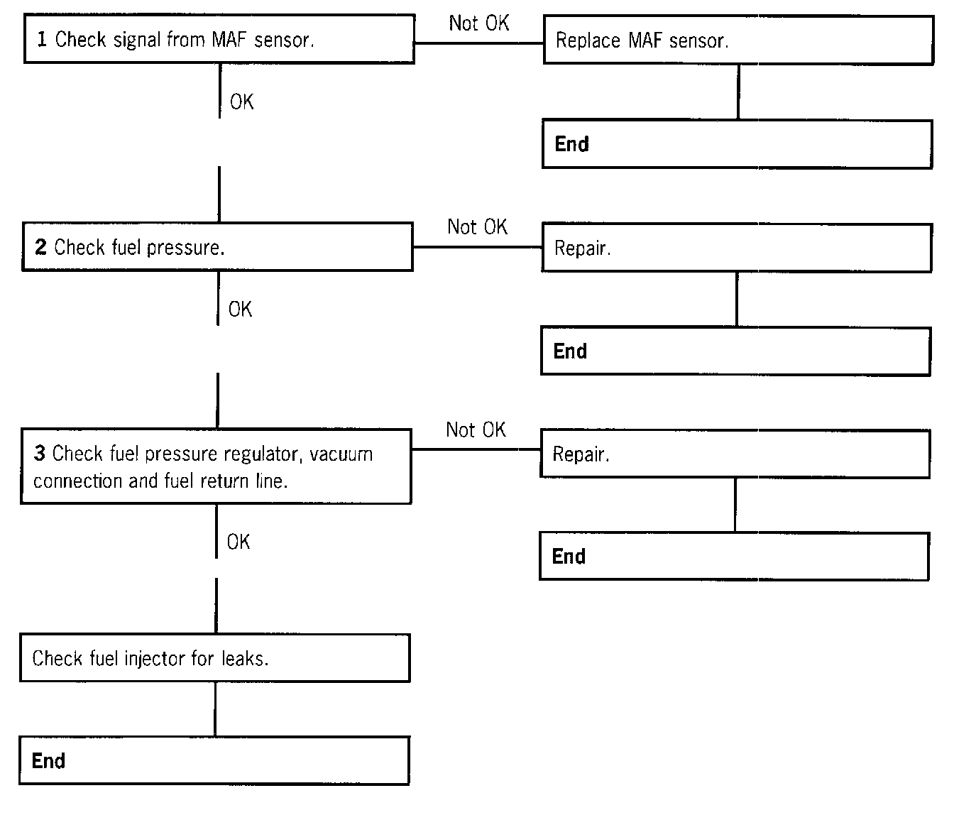 If the value is not attained, check the intake air system for leaks and check vacuum line to fuel pressure regulator for restrictions.