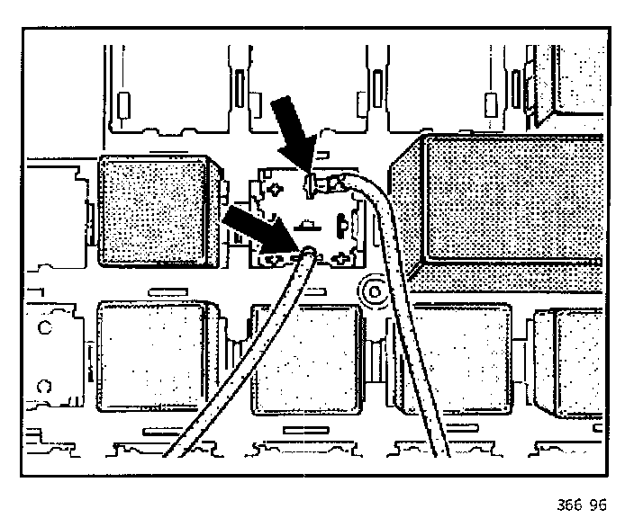 Disconnect the fuel pump relay from the central electrical system and jumper plug-in contacts 30 and 87 (identification 3 and 5 on central electrical system) with a fused shop-made cable. The fuel pump must now operate or deliver fuel.