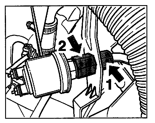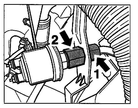 3. Undo the union nut (a/f 19) of the oil hose -1- on the oil pressure sensor. Counter at the hexagon (a/f 22) of the oil pressure sensor -2- when doing this.