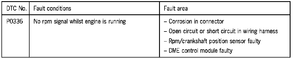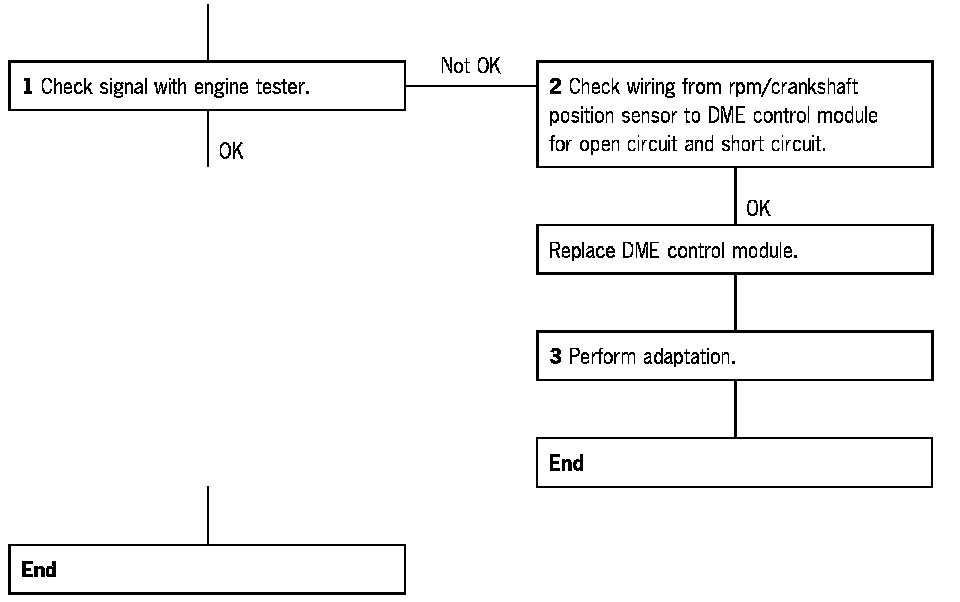 2 Check wiring from rpm/crankshaft position sensor to DME control module for open circuit and short circuit.