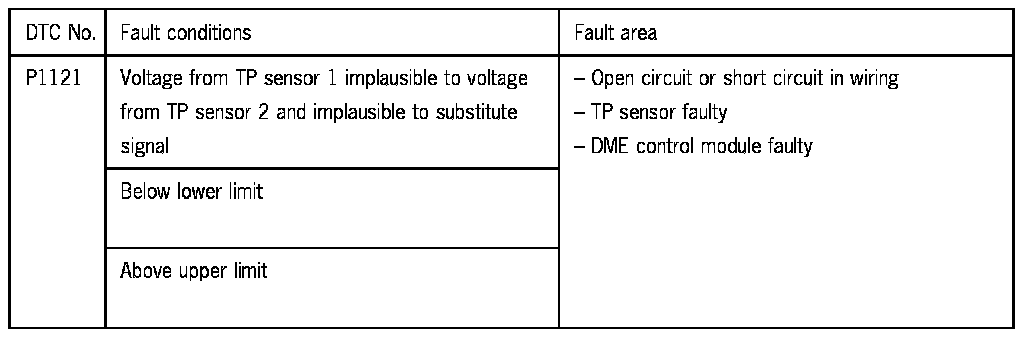 5 Check wiring from throttle part to DME control module for continuity or short circuit to B+ or ground.