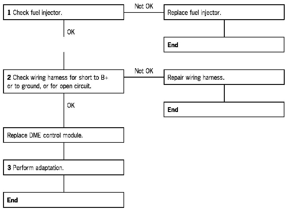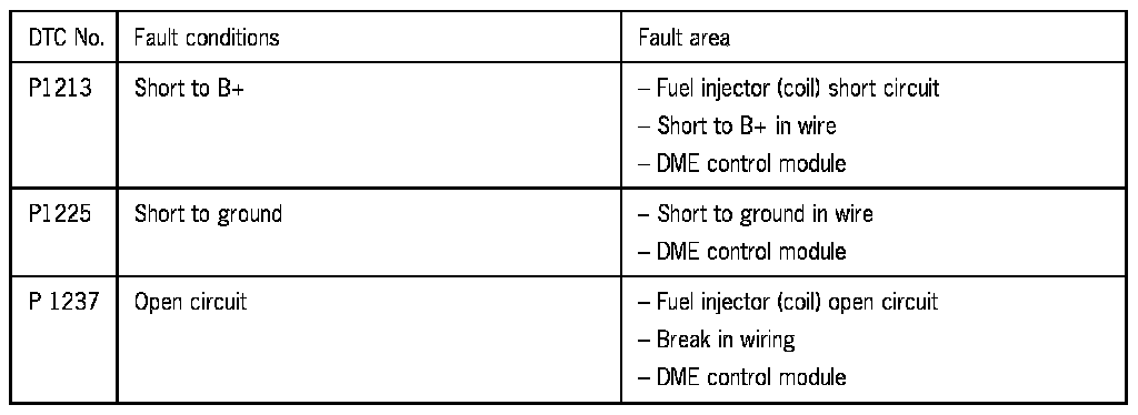 NOTE: Short to B+ and open circuit cause the fuel injector to be continually closed. Short to ground causes the fuel injector to be permanently open.