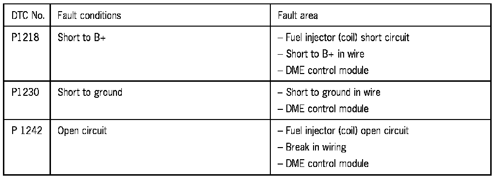 NOTE: Short to B+ and open circuit cause the fuel injector to be continually closed. Short to ground causes the fuel injector to be permanently open.