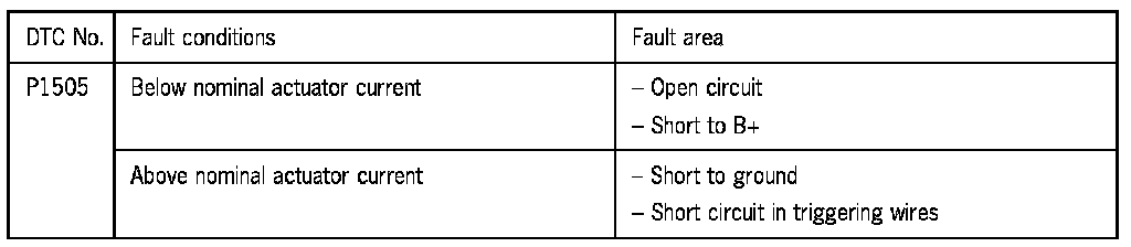 If a control range fault occurs, the actuator current for the throttle drive motor exceeds or falls below the nominal value.