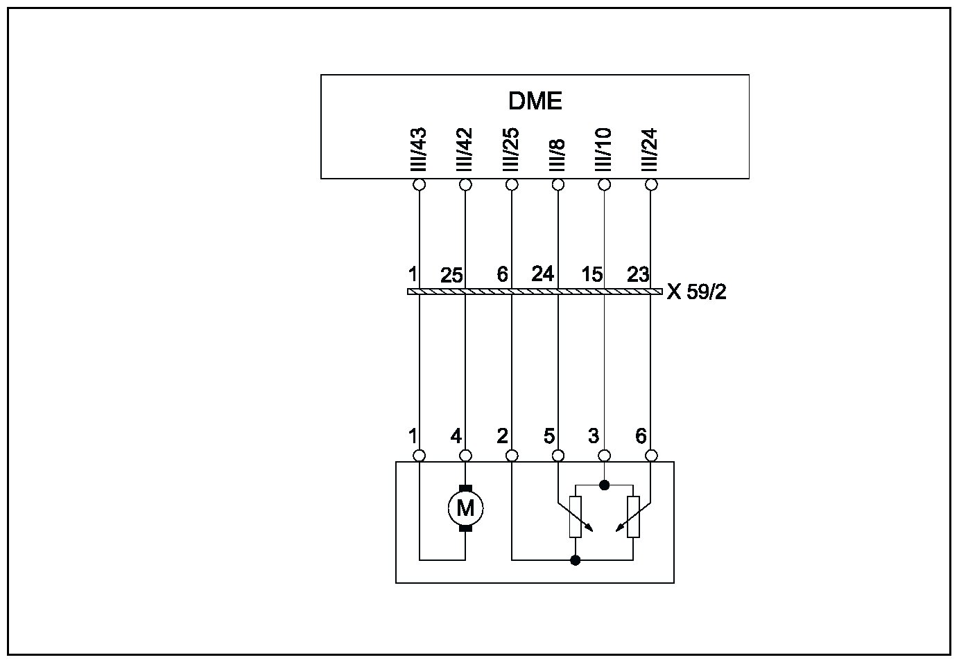 The throttle is positioned by an electric motor. As the mechanical throttle position is not calibrated in line with the actual value measured by the potentiometer, the mechanical stop of the throttle must be adapted by the DME control module. During adaptation, the lower mechanical throttle stop and emergency air position are learned. The learned values are stored in the memory.