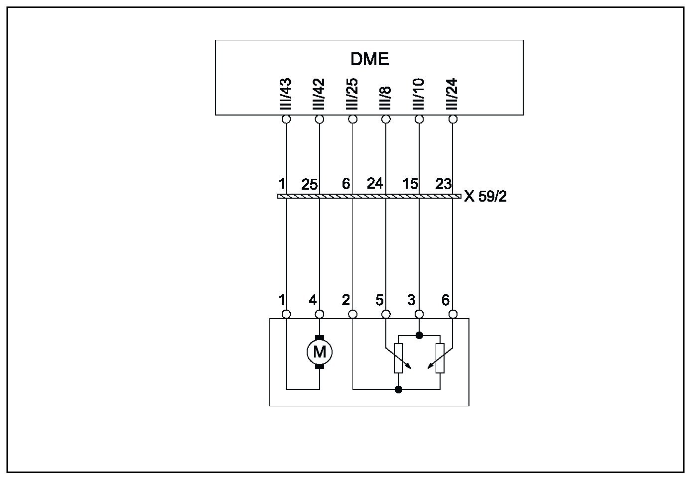 The actual values of the throttle position are read in via a 10-bit analog-to-digital converter. In order to achieve a higher resolution of the throttle angle in the idle speed range, an analog circuit amplifies the voltage of potentiometer 1. The throttle angle is then calculated as a function of the amplified signal.