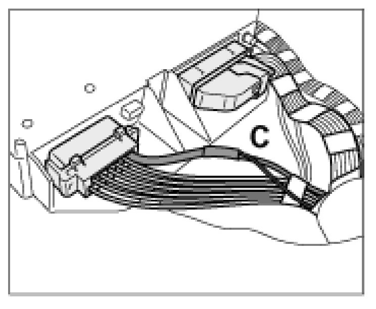 13. Lay the red/brown lead -C- from the service wiring harness to the plug (black) of the alarm system control module, crimp the lead to the red/brown lead, pin B8 - wiring diagram, external loads, terminal 30 - and insulate the lead. The leads must be watertight.