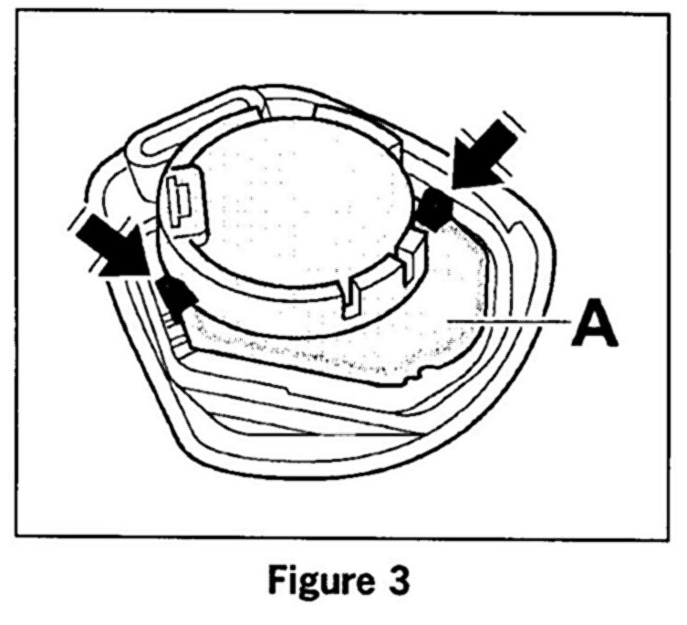 1.3 Press back tabs, Figure 3, arrows and take out circuit board, Figure 3, item A with battery.