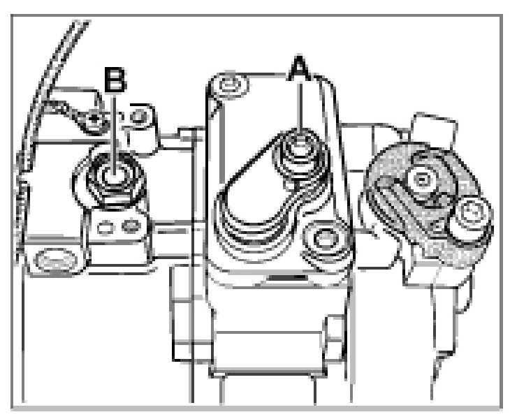 2. Open the oil filler screw -B- on the compressor.