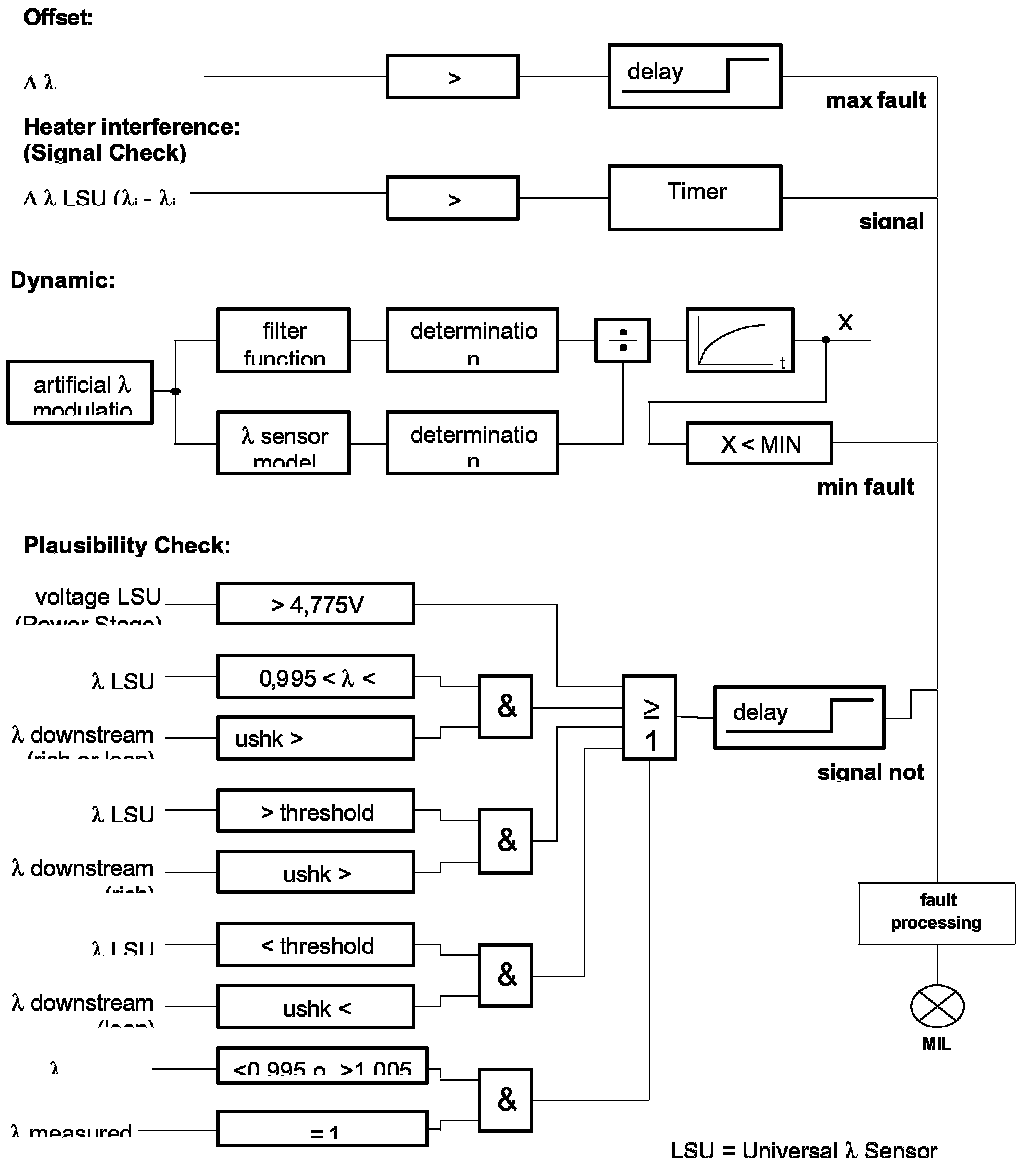 Due to aging the sensor dynamics can decrease. Diagnosis: Comparison of measured and estimated (model-based) lambda-error caused by artificial lambda modulation.