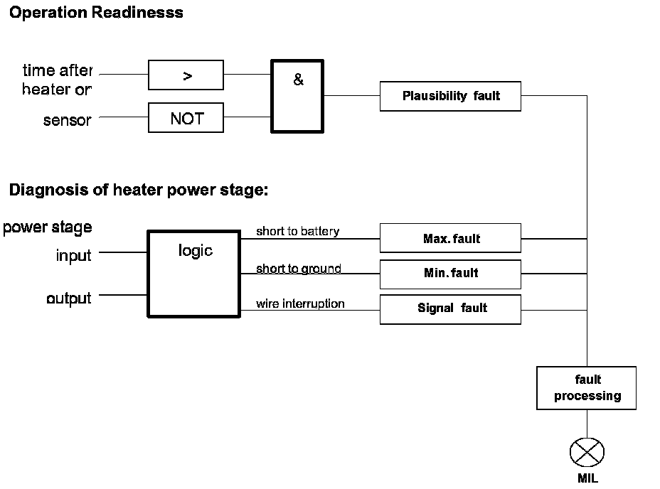 Time for "operation readiness" after "heater on". Malfunctioning heater will lead to "sensor fault" detection.