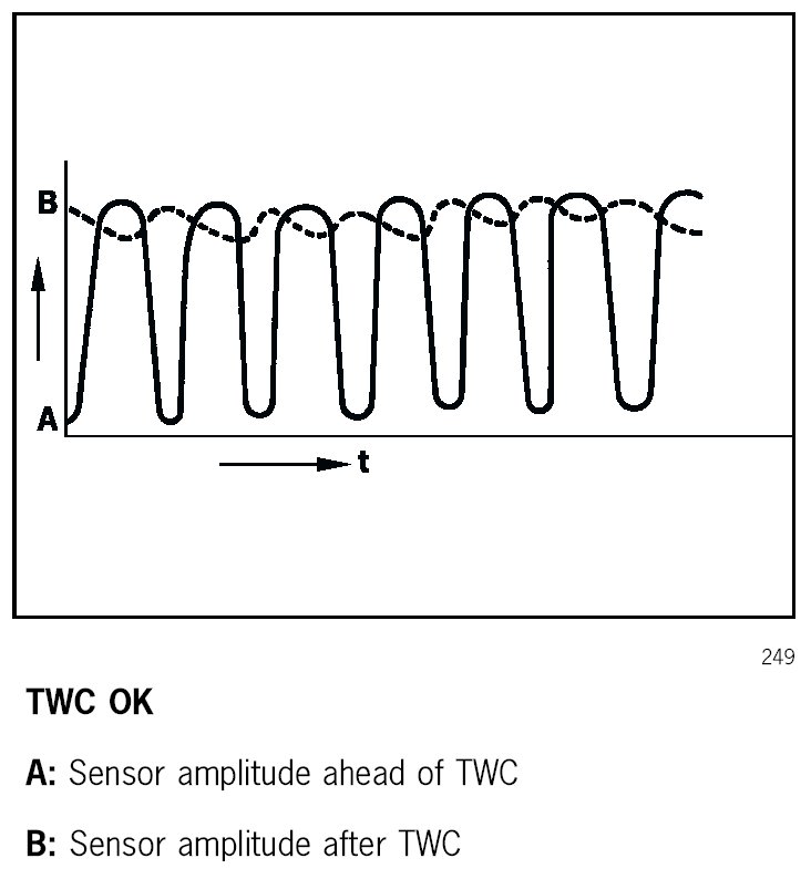 Misfiring damaging to the TWC is present if the temperature of the TWC reaches over 1000 °C.