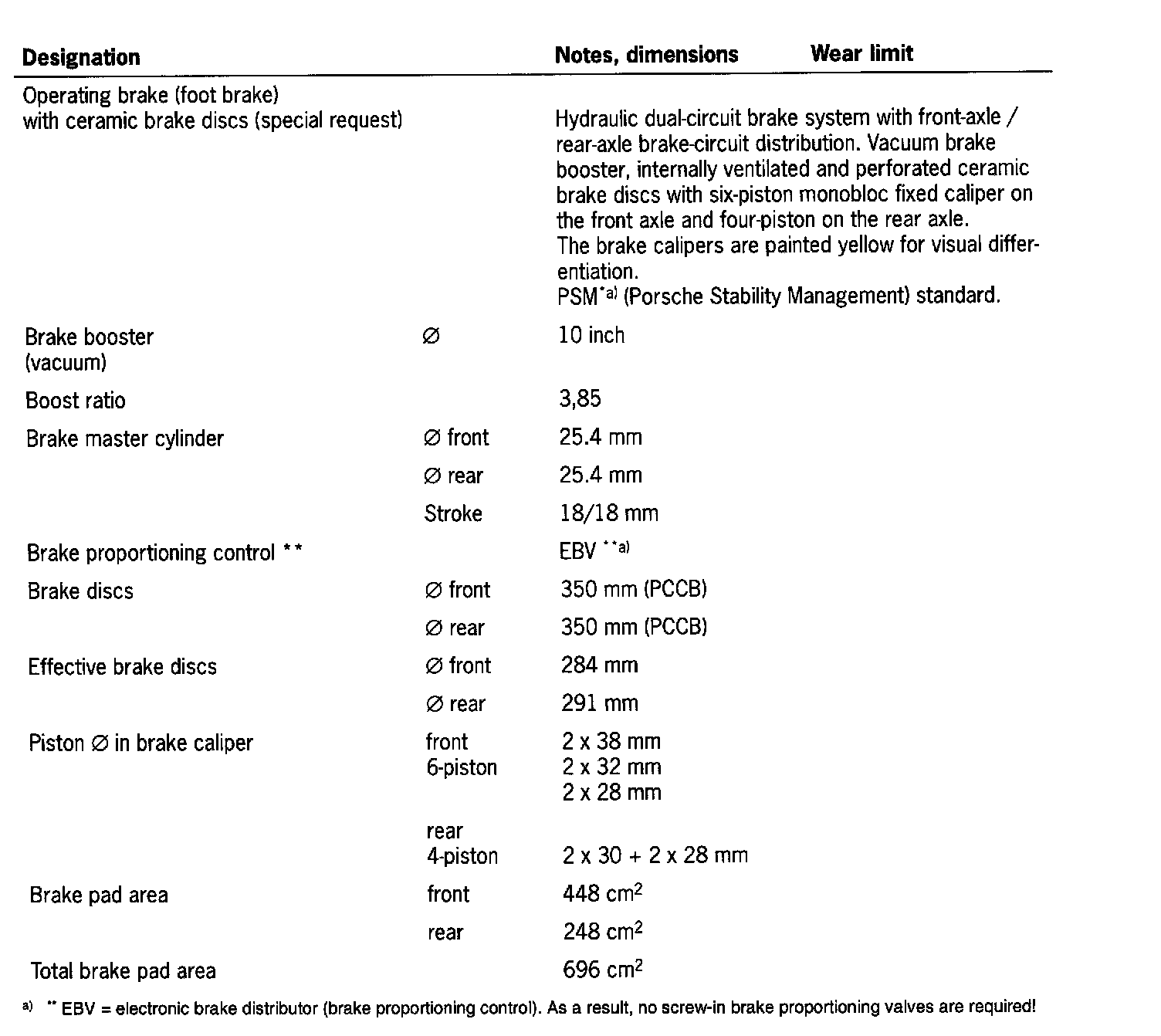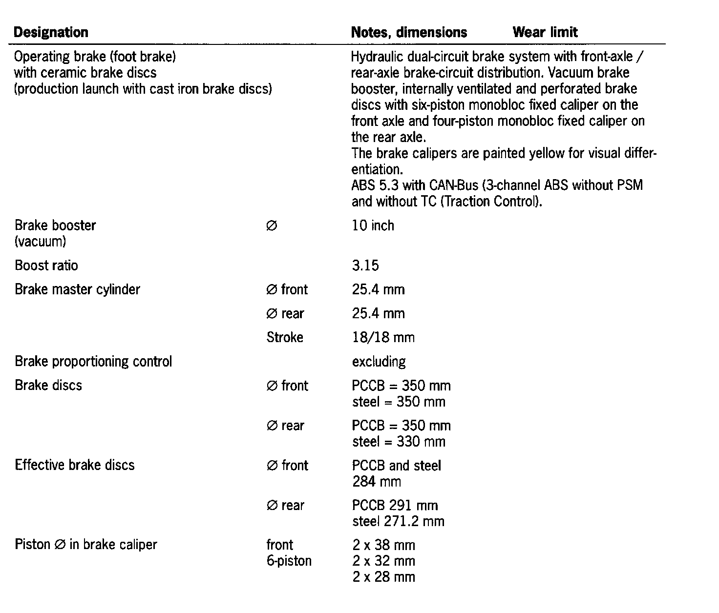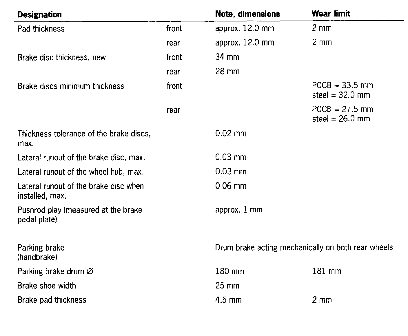 Wear limit technical data - Turbo with ceramic brake discs (PCCB]