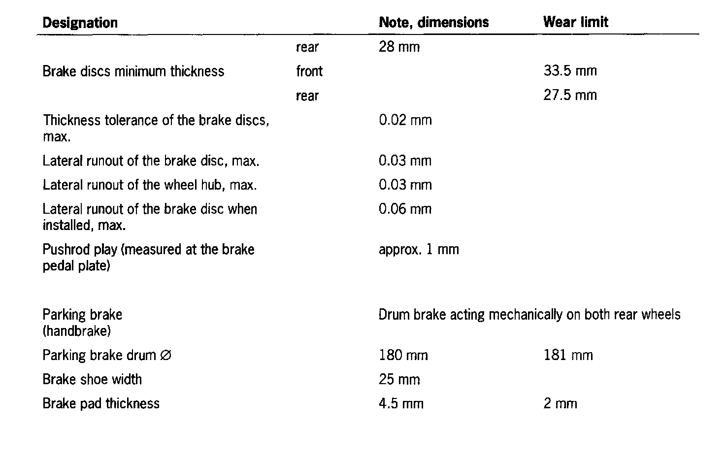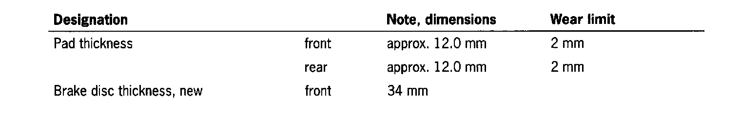 Wear Limit Technical Data - Turbo With Cast Iron Brake Discs