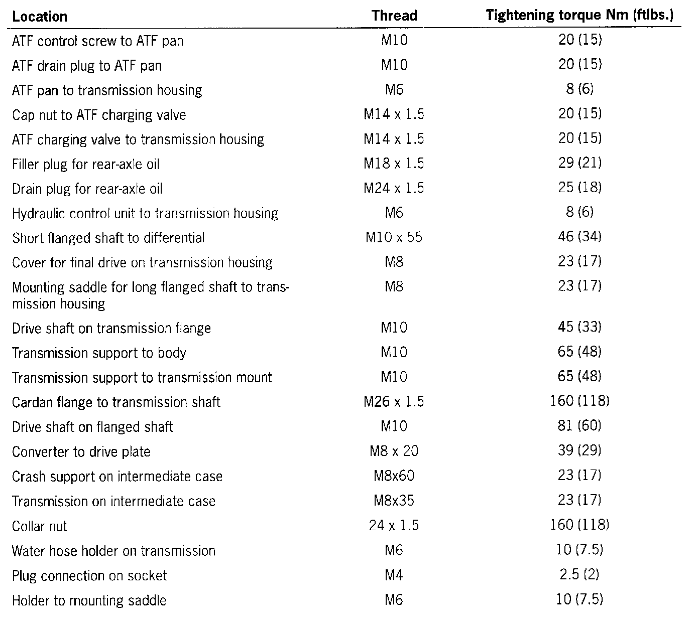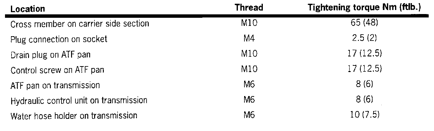 Tiptronic Related Tightening Torque: