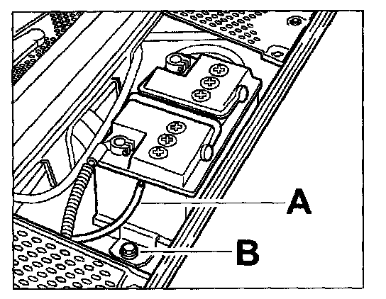 2. Screw in fastening screw -B-, position battery and tighten the fastening screw. Tightening torque: 23 Nm (17 ftlb.)