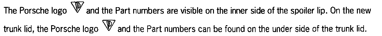 After removing the spoiler from the trunk lid (e.g. when repairing), new microencapsulated screws must be used. These can be ordered separately (see parts list). The Aerokit "Turbo" is also available ex-works for new vehicles under Exclusive option No. "XAF". In addition, the standard side member panels are painted the same colour as the vehicle.