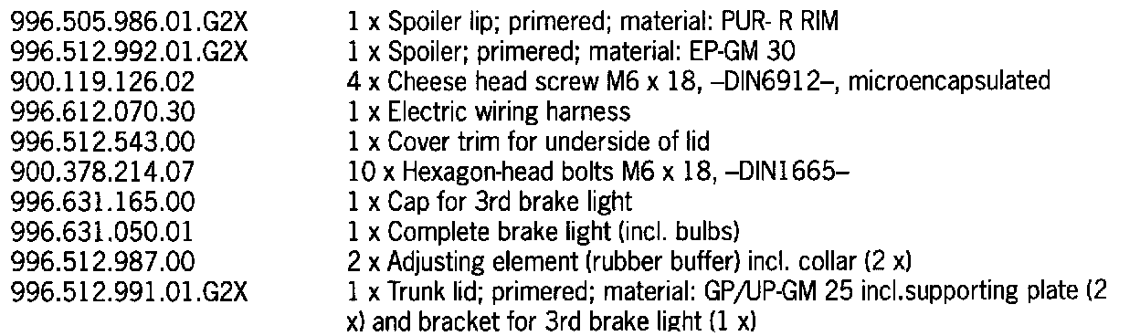 The Aerokit "Turbo" consists of a new spoiler lip for the front spoiler and a new rear lid (hereafter referred to as trunk lid) with a solid spoiler. A brake light in the spoiler will replace the standard additional brake light fitted in the standard spoiler.