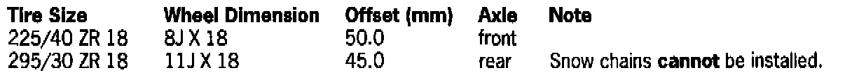 The tire pressures shown are valid only for tires approved by Porsche. Tire pressures must be checked and adjusted cold (approximately 20° degrees Celsius or 68° degrees Fahrenheit). Tire pressures can never be lower than what is specified above.