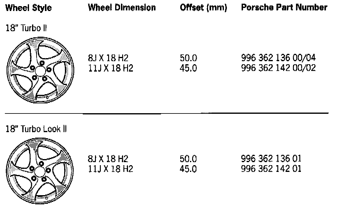 For 18" Turbo II wheels use part number, 993 361 073 00, steel valve.