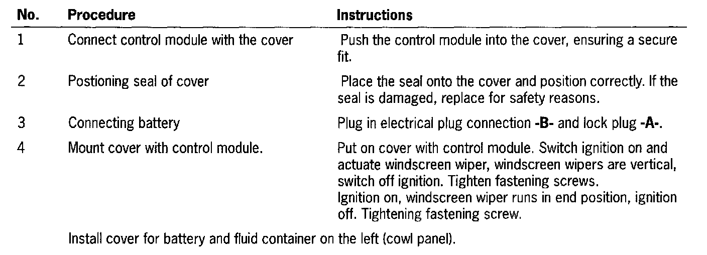 WARNING: When working in the area of the wiper link, the ignition key must be removed.