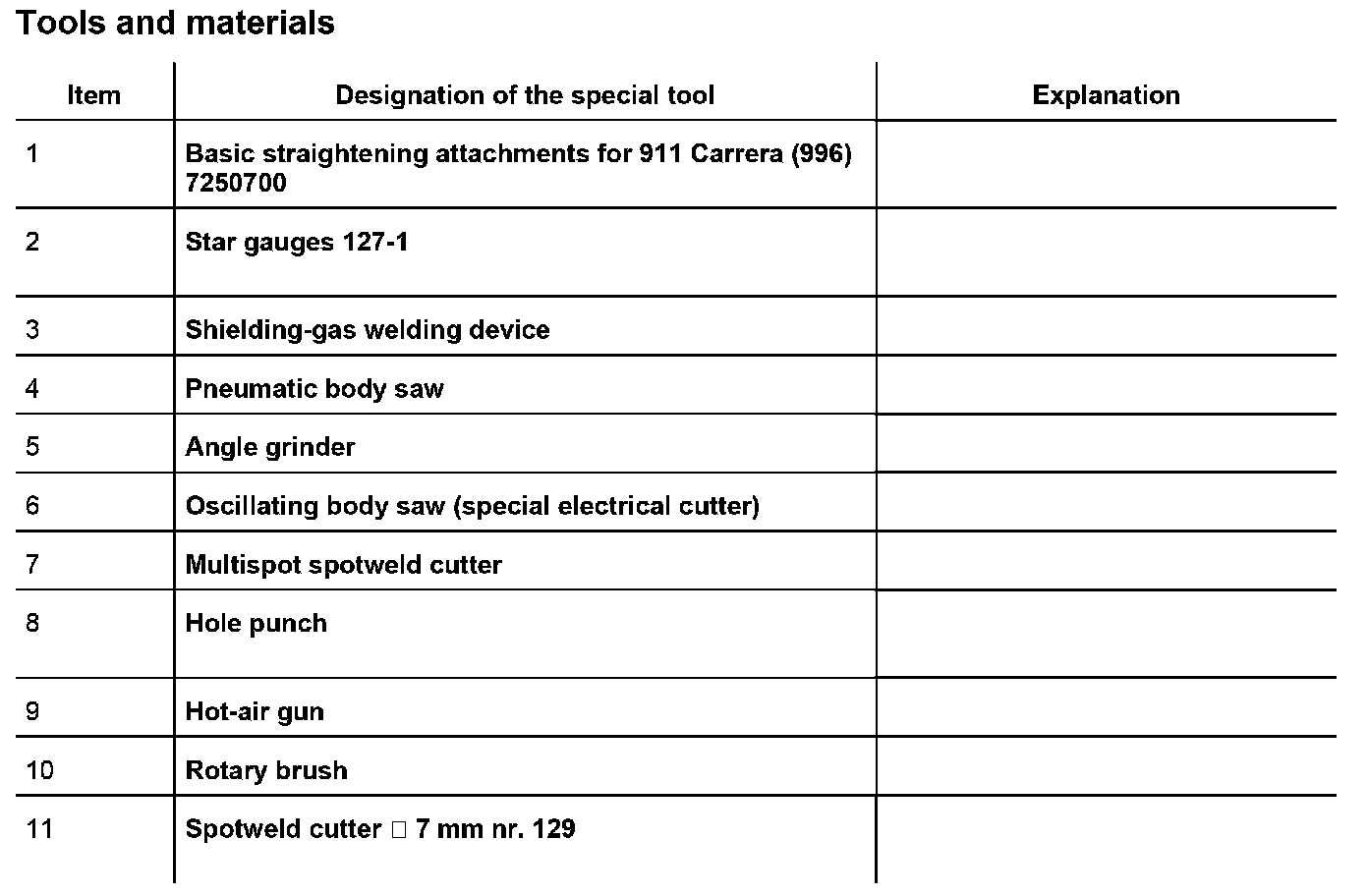 WARNING: During body repairs, safety instructions and the general information and quality instructions must be followed. Refer to Safety instructions.
