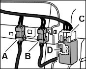 2.1. First insert the seat heating pin housing -C-, then the belt buckle -D- into the flat connector.