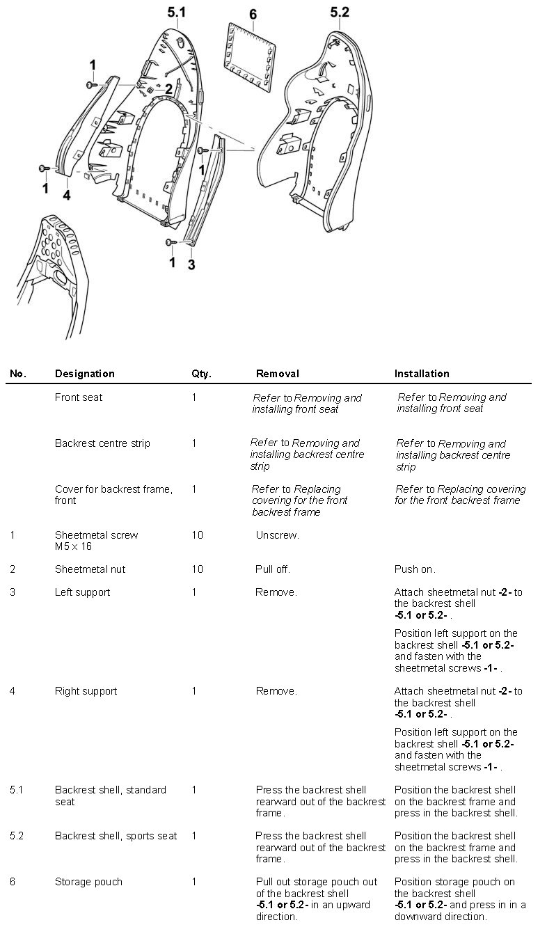 Removing and installing backrest shell