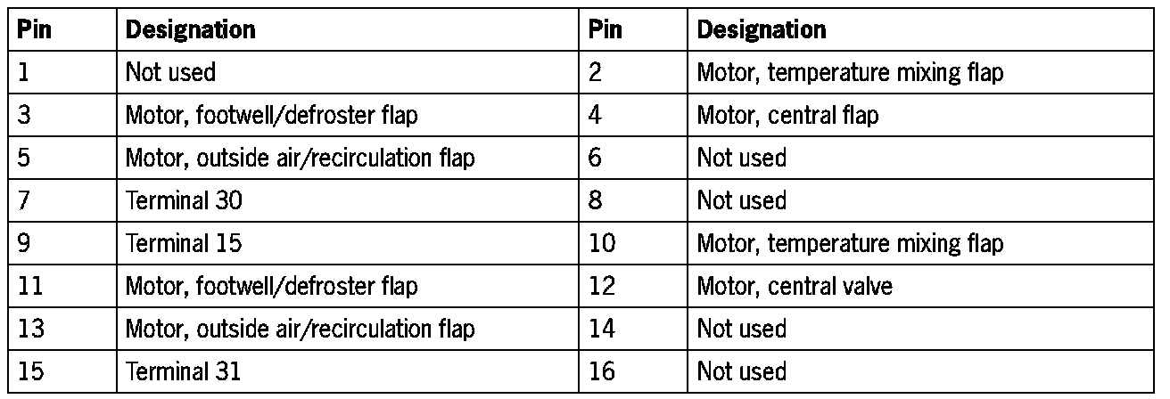 Connector assignment for air-conditioning control unit