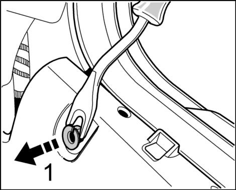 2. Unlock locating peg -1- of the support using the commercially available removal tool.