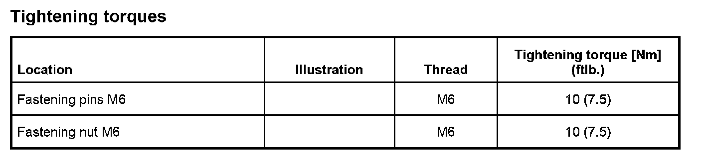 Tightening torques