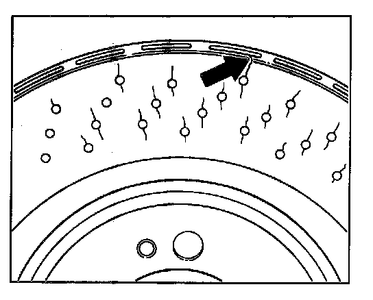 Arrows - Zone where most wear occurs in brake disc friction surface