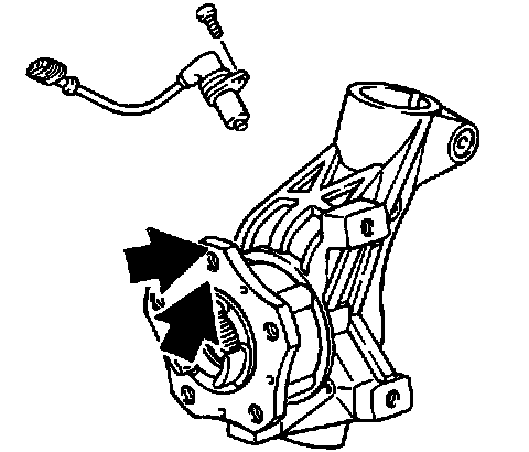 7. Check the wheel hub lateral runout as described below: Measure 1 x outside (arrow) and 1 x. inside (arrow) of the wheel bolt area (5-point measuring procedure) on the front face of the wheel hub. Fasten the dial gauge using a commercially available universal dial gauge holder.