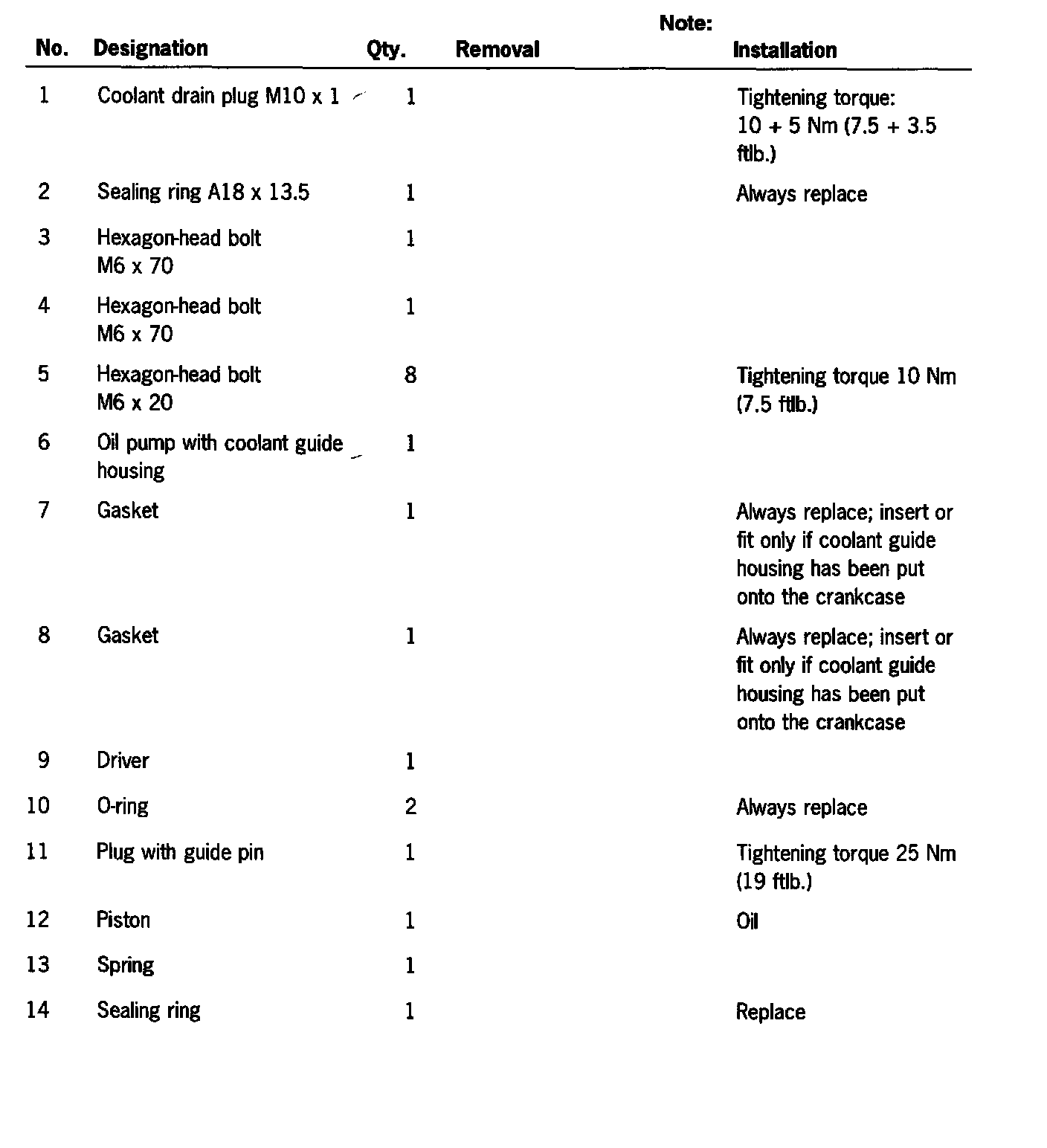 Removing and installing oil pump with coolant guide housing