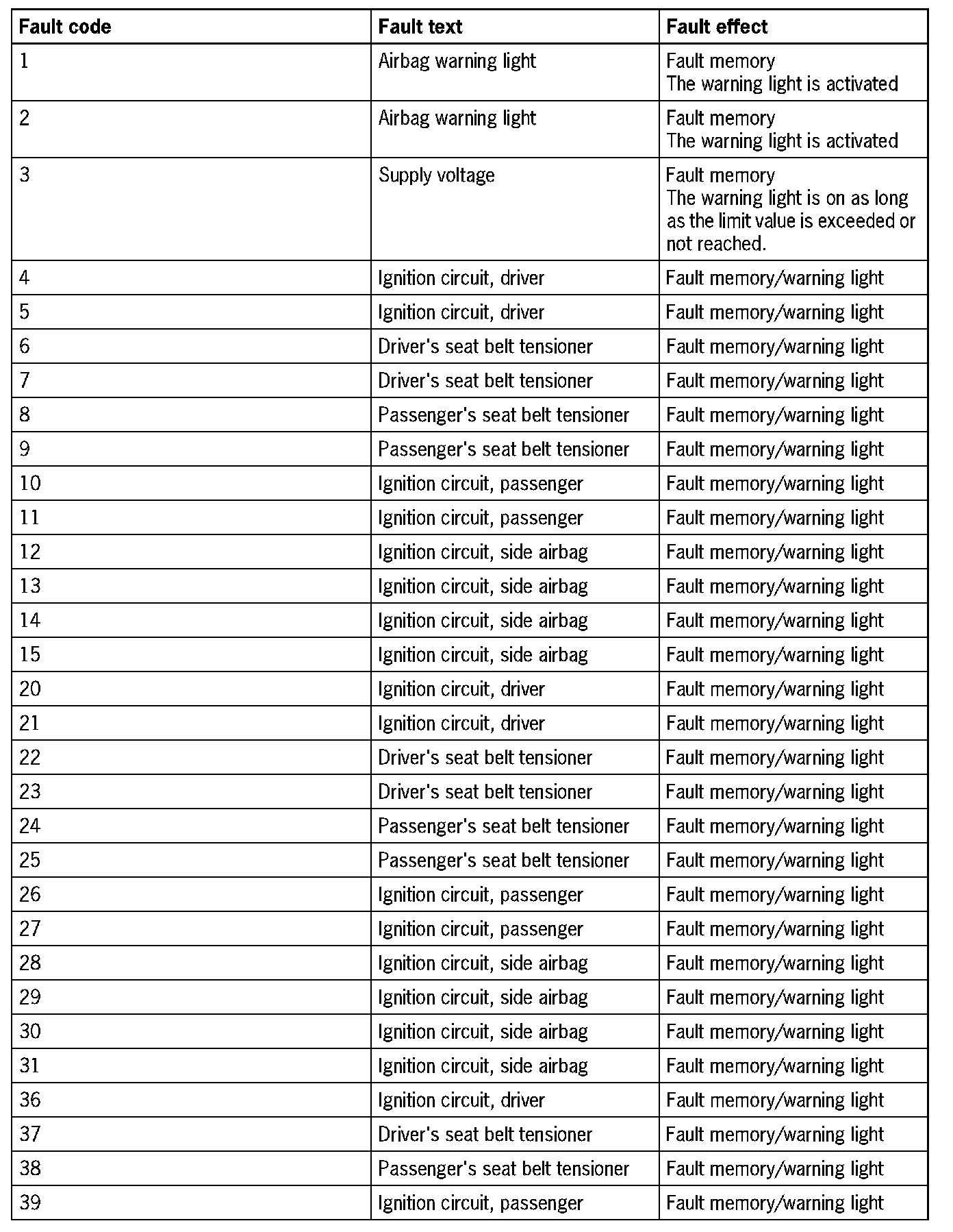 Fault Overview - Airbag System B05