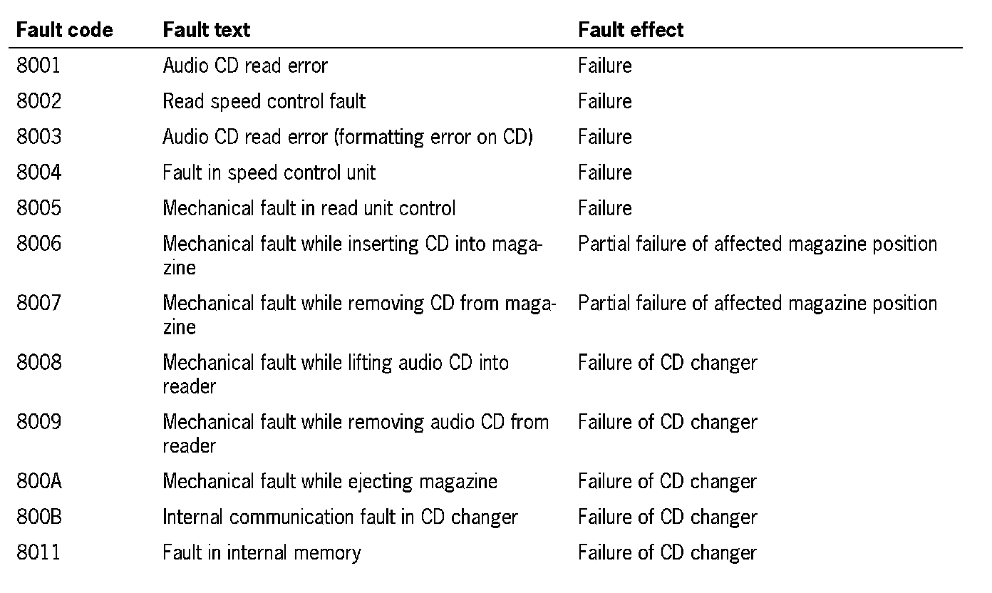 Fault Overview - CD Changer