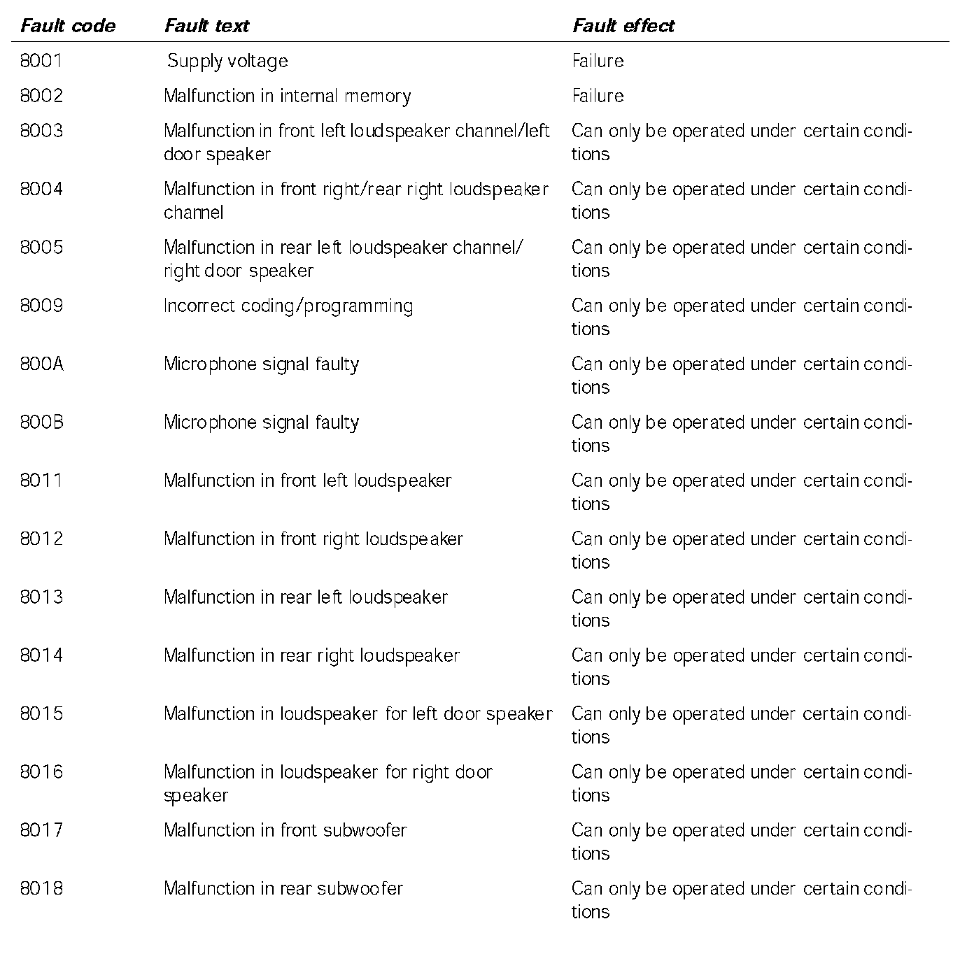 Fault Overview - External BOSE Amplifier