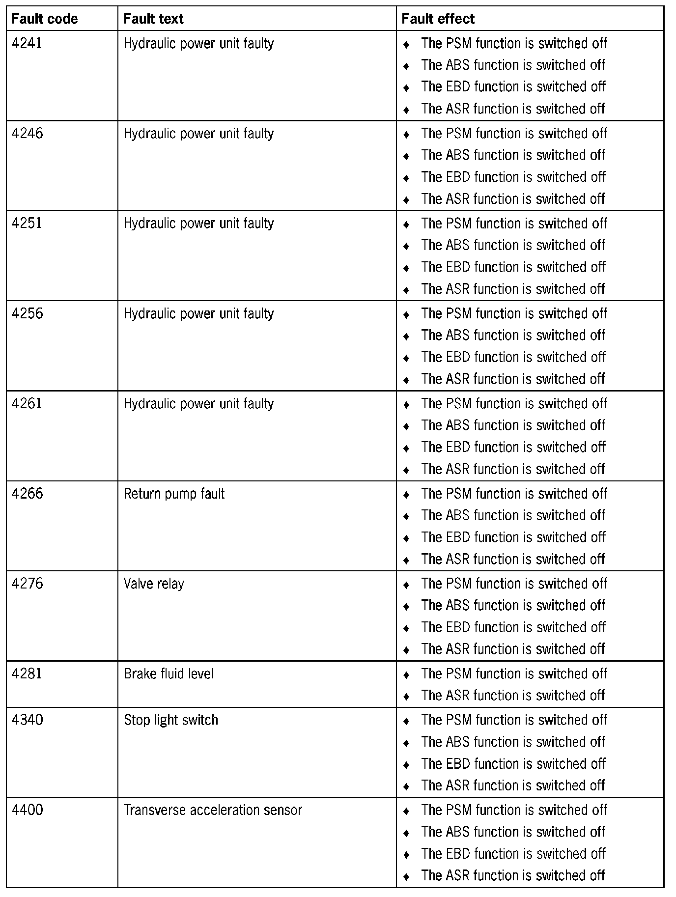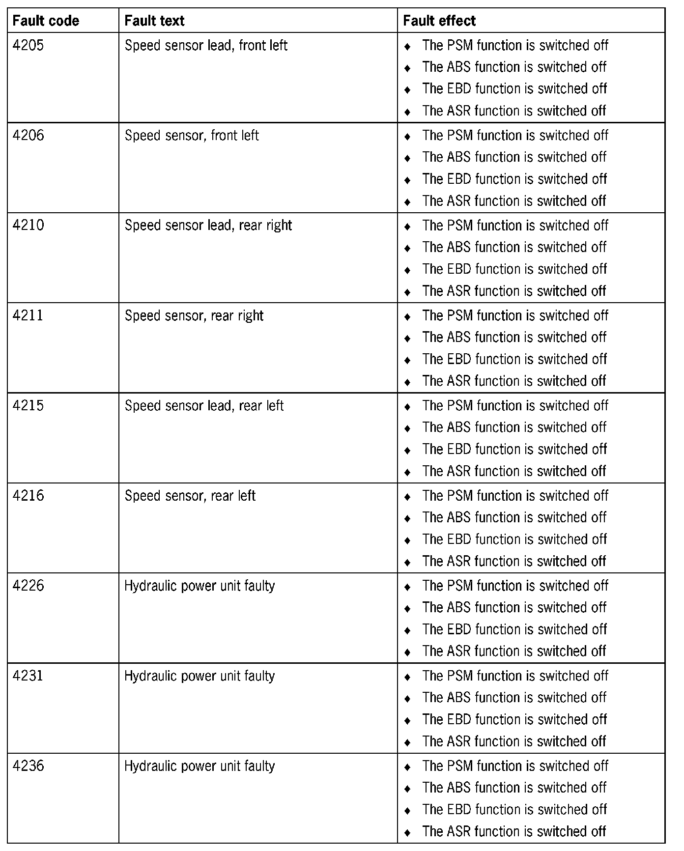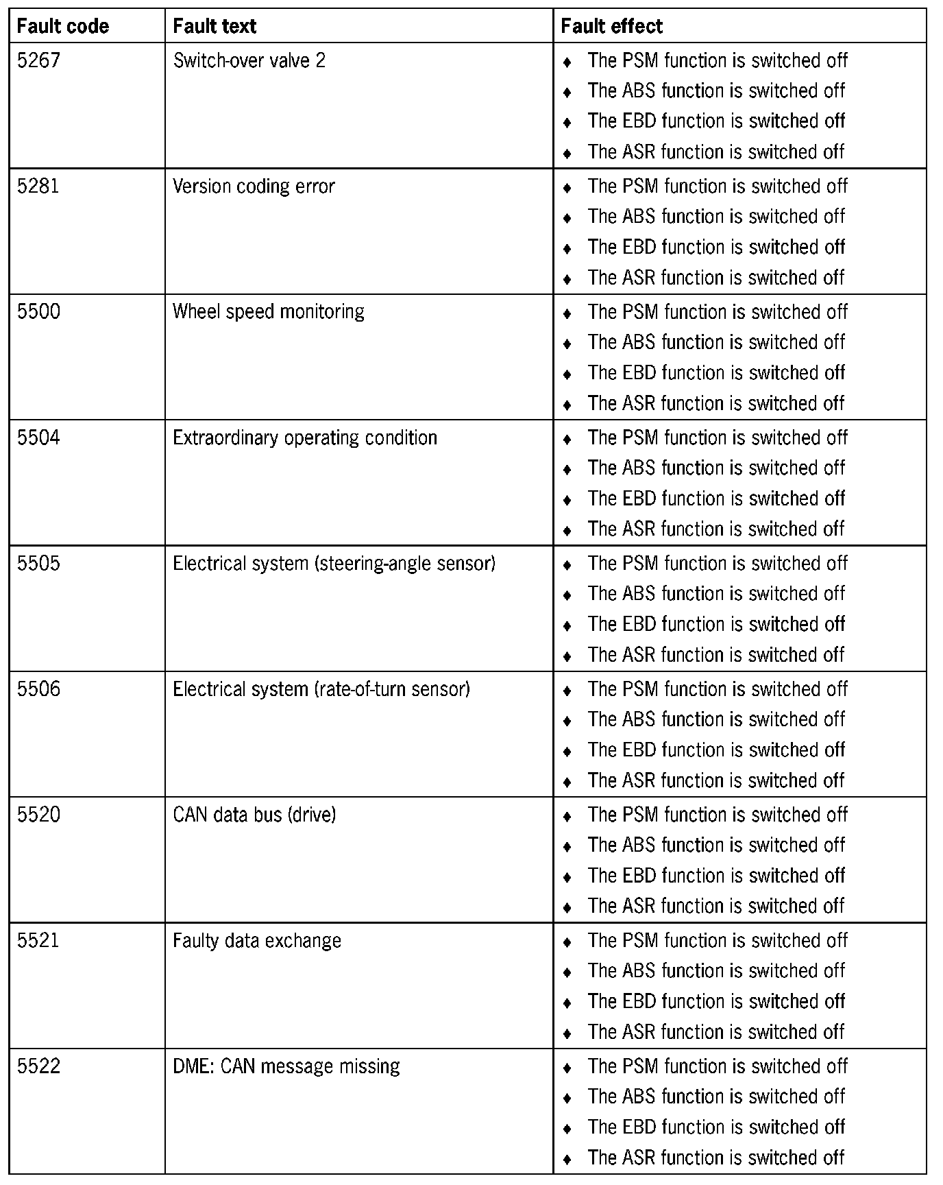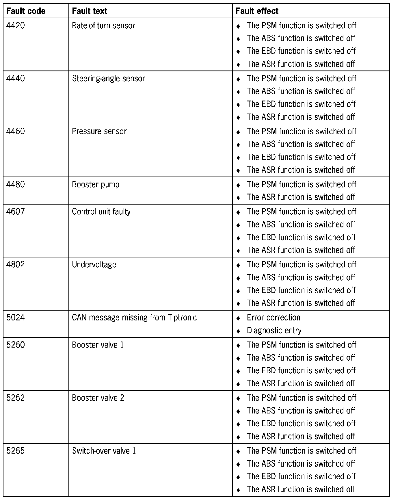 Fault Overview - PSM 5.3 and 5.7