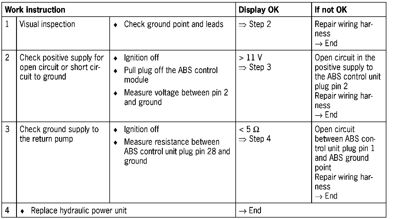 - Short circuit or open circuit in the positive/ground supply to the hydraulic power unit