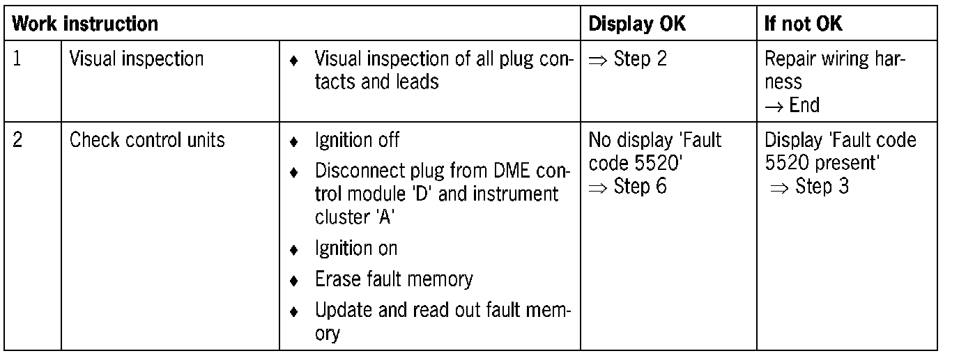 NOTE: Before troubleshooting, read out the fault memory of the DME and the instrument cluster and, if necessary, remedy faults.